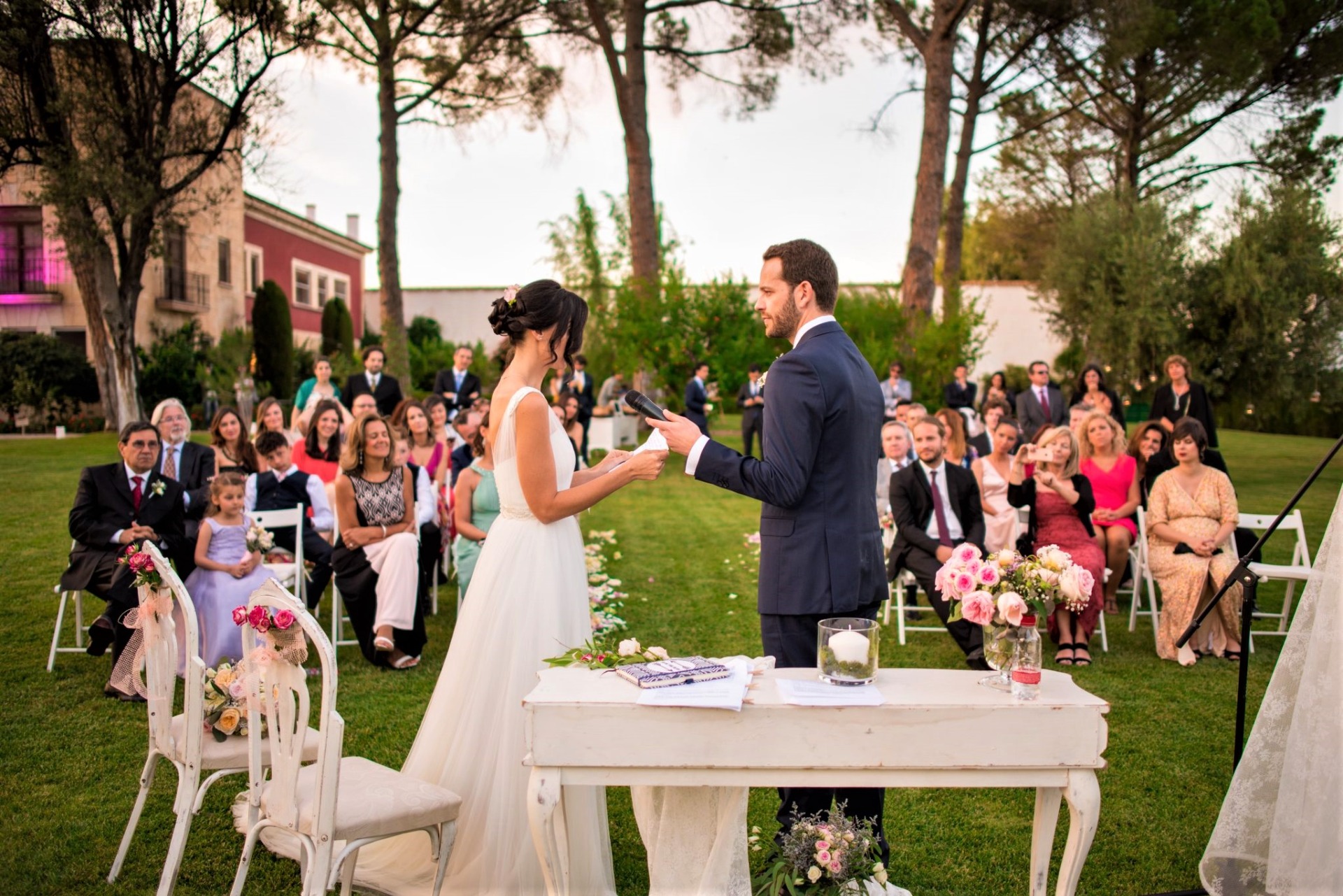 Consentimiento y alianzas. Rito matrimonial: En este momento de nuevo podéis elegir entre escuchar la música muy bajito debajo de vuestras voces mientras que os dais el consentimiento, es justo el momento en el que os estáis casando. En ningún momento os tapará la música, solo embellecerá el acto.
